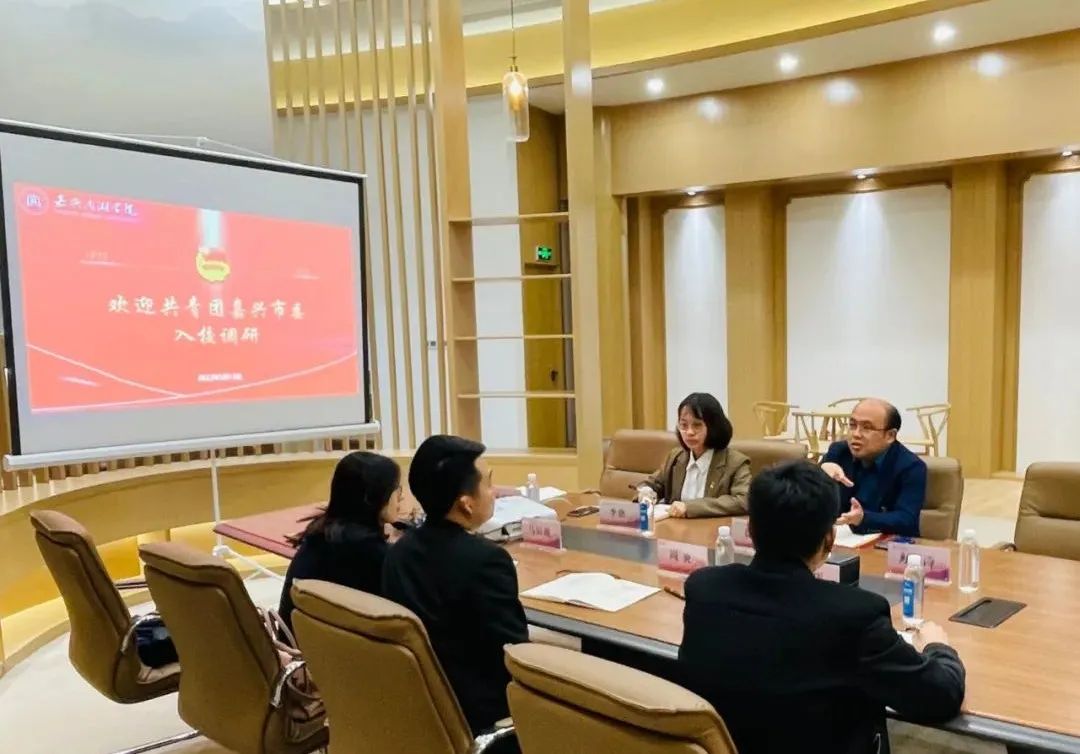 2022年5月13日星期五下午,团市委副书记周炎、组织部部长马辰薇、组织部副部长王光辉(挂职干部)莅临我校指导调研。我校学生工作部部长徐进、校团委负责人李艳、部分分院团委书记、团干部等参会。