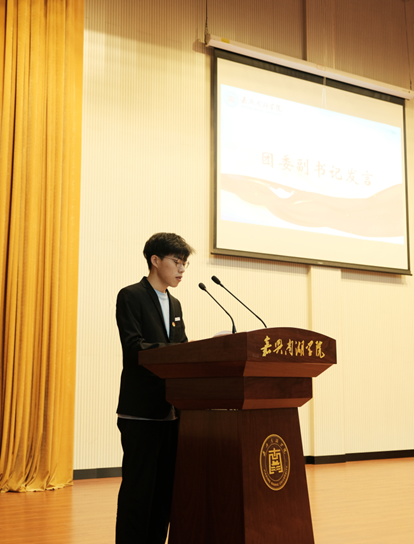 最后,校团委书记李艳老师发言。她指出,1931年的今天,侵华战争打响,我辈当铭记历史,振兴中华。同时她对上一年校团学组织的工作做了总结,并肯定了上一年的工作成果。李艳老师表示,在过去一年的工作中,她见证了校团学组织的成长和校团学干部的成长。最后,她对新一届全体干部提出了三点建议:一,发挥联系领导、老师和同学之间的桥梁纽带作用;二,热爱学生工作,不忘服务师生、奉献光热的初心;三,正确处理工作与学习,保持积极的态度与乐观的心态。同时也指出,同学们应肩负时代责任,为民族复兴奉献。