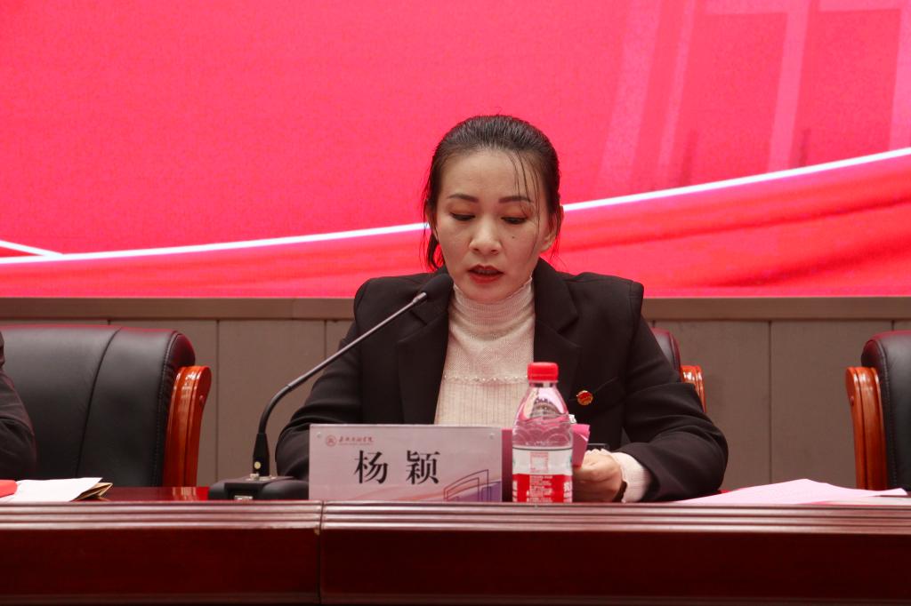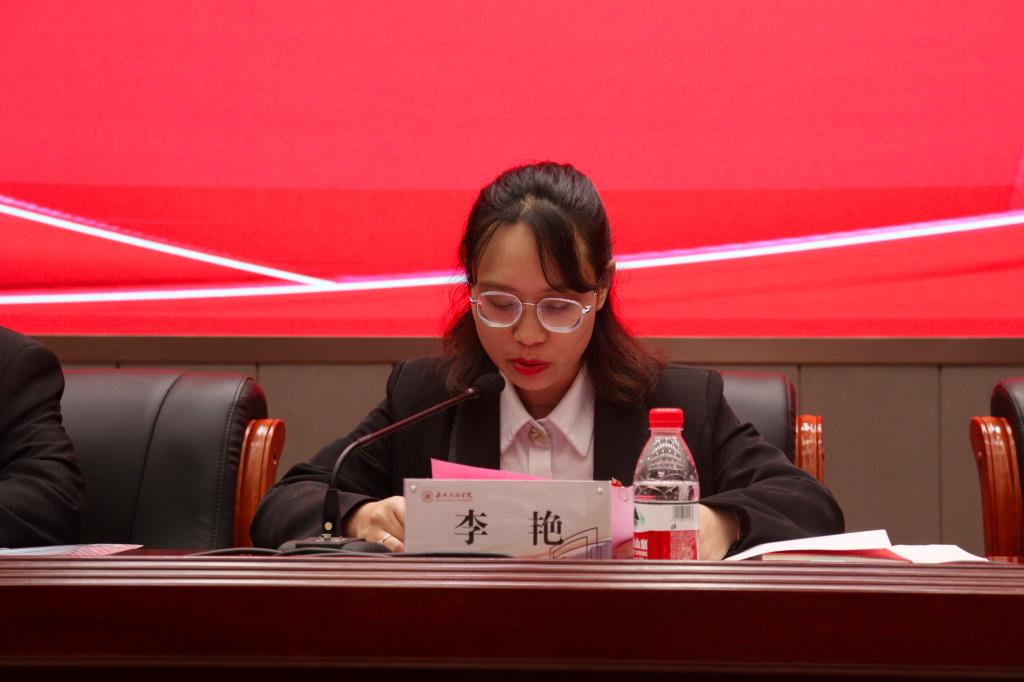 在奏响国歌和团歌之后,会议正式开幕。首先,校团委副书记杨颖学习传达中国共产党第二十次全国代表大会精神。杨颖指出,党的二十大报告提出“青年强,则国家强”,当代青年应与新时代同行,传承青年历史,开拓未来。随后,校团委副书记黄宇辉对共青团嘉兴市第九次代表大会代表候选人预备人选推荐酝酿工作进行情况报告,回顾前期代表候选人推荐人选酝酿工作,后经与党委组织部、学工部会商,及全委会集体商议、酝酿决定,拟推荐李艳、沈梦可、章明波、杨墨等4名同志为共青团嘉兴市第九次代表大会代表候选人推荐人选,并进行了五个工作日的公示。