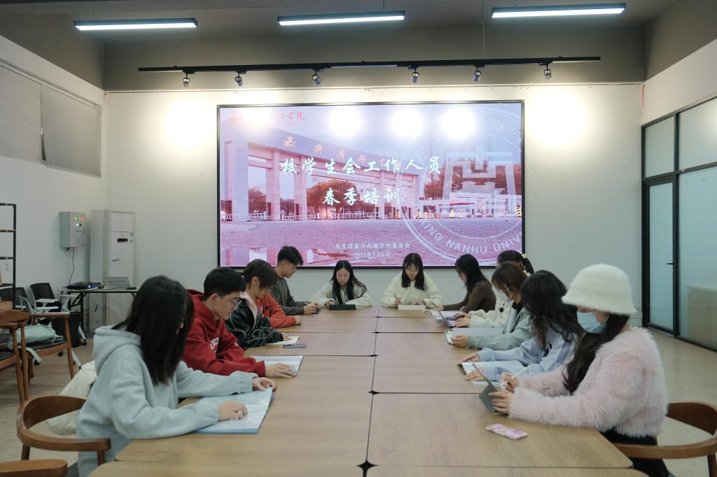 为学习党的二十大报告,深化学联学生会组织改革。我校于3月6日在团学楼举行春季理论培训。学生会主席团成员王雅楠主持本次会议。 首先,王雅楠对学生会提出三点建议。她指出,一:学生会要明确工作职责,强化责任落实,凝聚全体骨干提高执行力;二:增强服务意识,践行全心全意为同学服务的宗旨;三:发挥模范带头作用,展现出南湖青年的良好精神风貌。随后,各部门代表依次发言,围绕上学期部门日常工作开展情况、不足之处以及新学期主要工作进行汇报,内容容详实,充分展现了他们积极进取的工作态度。同时,各部门表示将会不断完善工作流程,锐意进取,提高工作质量和工作成果。通过此次的学习,大家深刻了解了习近平总书记和党中央对当代青年学生的期望与要求,明白了作为学生干部,要以全心全意为同学服务为工作宗旨,同时也要加强自身的学习,提高自己的综合素质和学习能力,树立良好的榜样,做一个新时代的好青年。 至此,本次会议结束。本次会议较好地提升了学生组织的服务意识,指出了改革方向。参加本次培训的成员表示将会继续秉持“全心全意服务同学”的宗旨坚定不移听党话、跟党走,怀抱梦想又脚踏实地,敢想敢为又善作善成,立志做有理想、敢担当、能吃苦、肯奋斗的新时代好青年,让青春在全面建设社会主义现代化国家的火热实践中绽放绚丽之花。