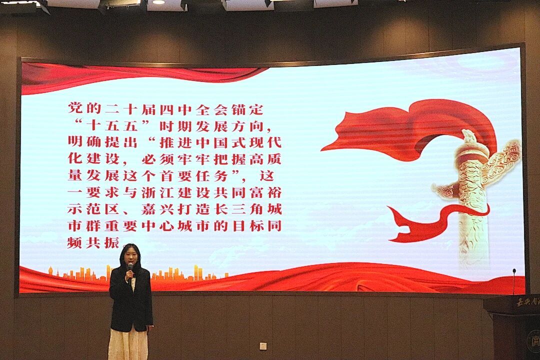 为深入学习领会、全面准确把握党的二十届四中全会精神的核心要义与实践要求,引导广大青年将思想和行动统一到全会精神上来,凝聚起奋进新征程、建功新时代的青春力量,由共青团嘉兴市委主办、嘉兴南湖学院团委承办的 “奋进‘十五五’ 青春挺膺担当”学习贯彻党的二十届四中全会精神宣讲活动于2025年12月18日在嘉兴南湖学院第一报告厅圆满举办。