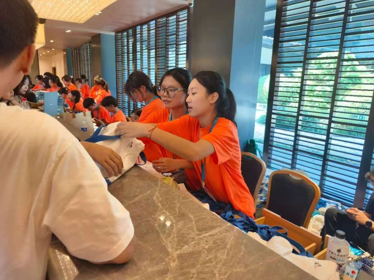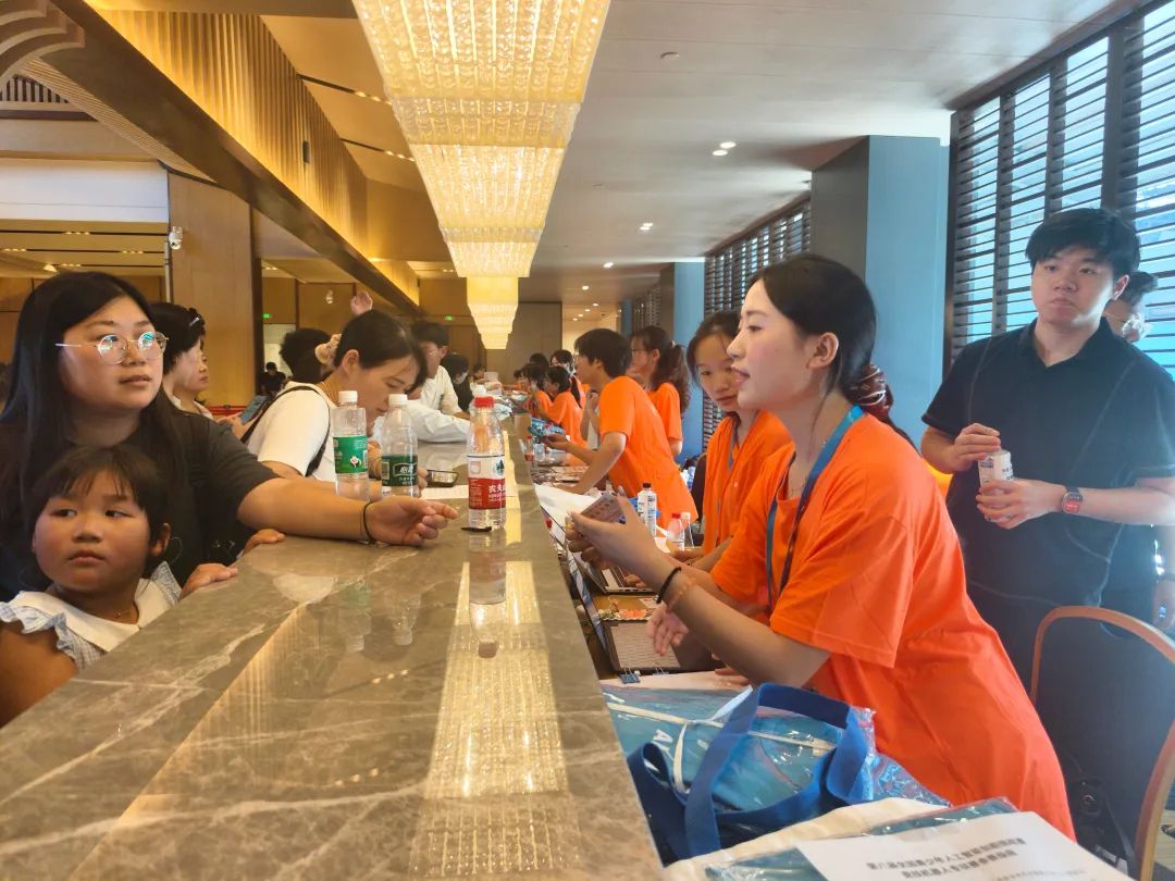 在签到区,志愿者们面带热情微笑,通过清晰指引,高效有序地协助参赛者完成身份核验、资料领取等流程,并详细介绍入场安排。他们分工明确、应答及时,以确保签到环节的顺利进行。