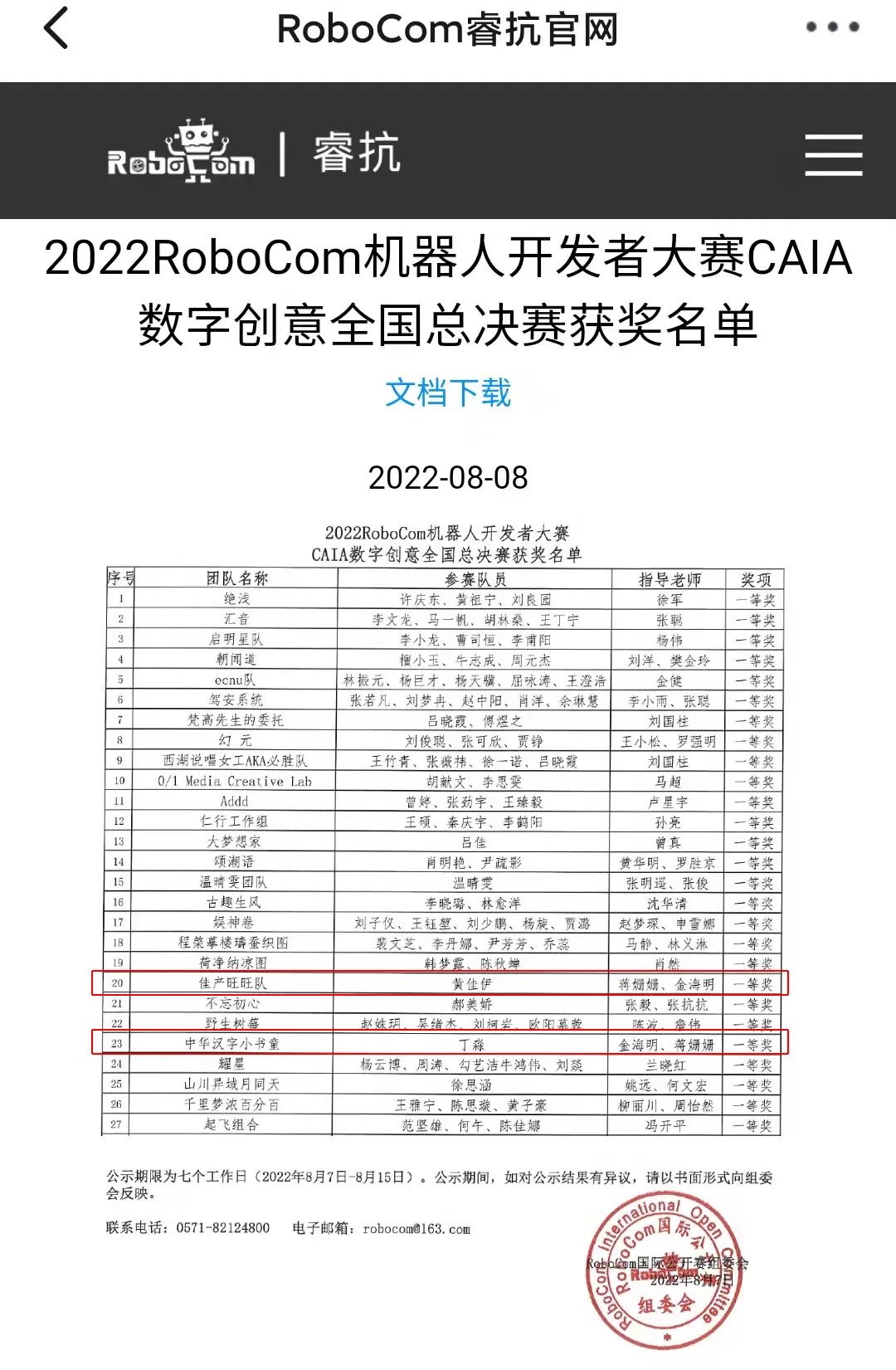 8月5日-6日,2022Robocom(睿抗)机器人开发者大赛CAIA数字创意全国总决赛在嘉兴国际会展中心举行,我校时尚设计学院学子勇夺2项全国一等奖。