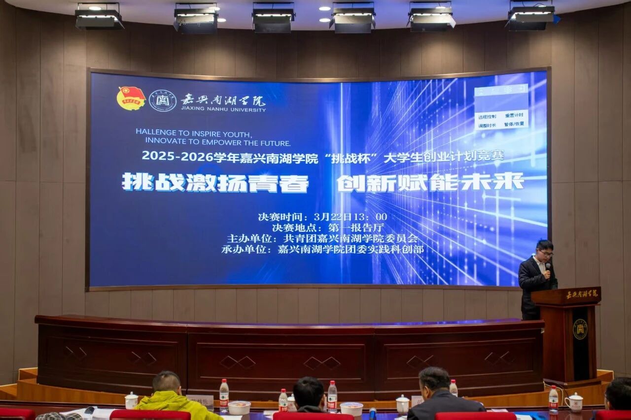 为培育青年创新精神与实践能力,嘉兴南湖学院团委实践科创部于2026年3月22日下午在第一报告厅举办了嘉兴南湖学院“挑战杯”大学生创业计划竞赛决赛答辩。